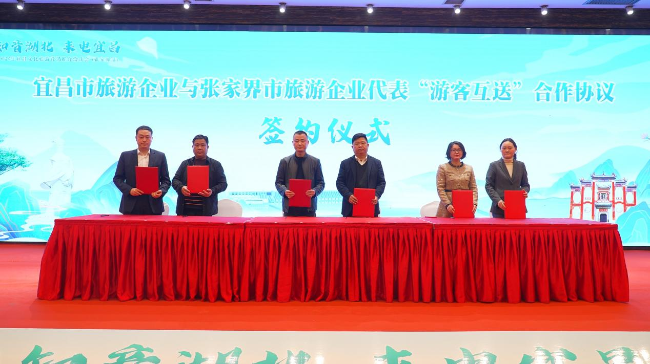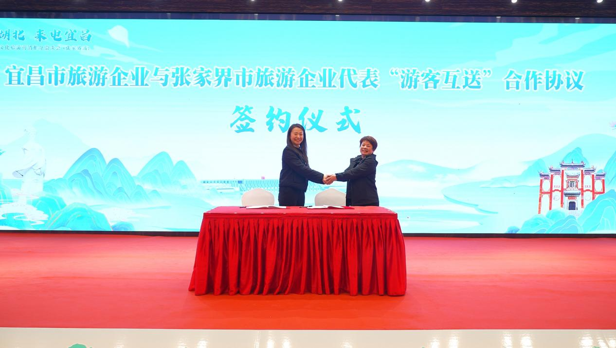 活動現(xiàn)場,湖北三峽文旅集團(tuán)旅行服務(wù)公司與張家界中國旅行社股份有限公司簽訂合作協(xié)議,三峽文旅集團(tuán)海峽國旅、三峽旅游集團(tuán)交運(yùn)國旅與張家界博客國際旅行社有限公司、湖南旅游張家界公司簽署“游客互送”合作協(xié)議。兩地文旅企業(yè)圍繞市場拓展、區(qū)域聯(lián)動、線路設(shè)計(jì)等展開熱烈交流討論。